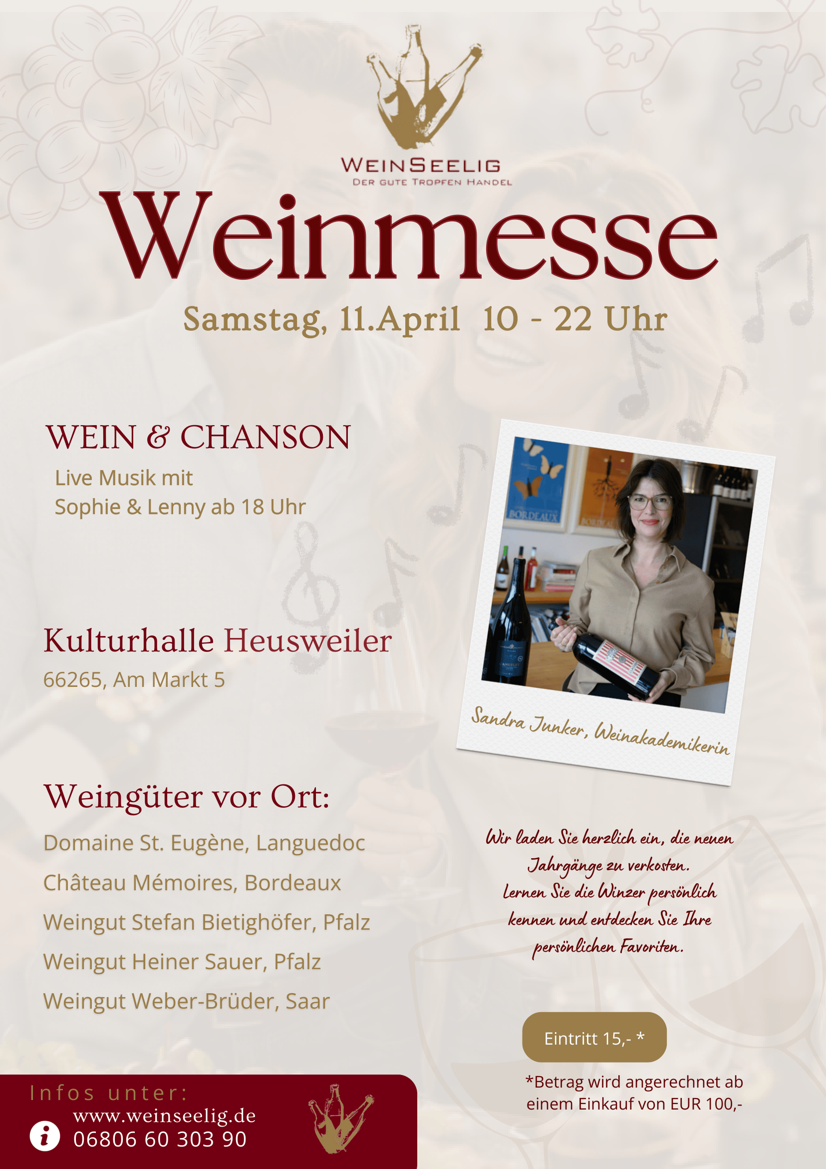 Unsere Weine enthalten Sulfite. Kristallausscheidungen (Weinstein), die auf Grund natürlicher Reife des Weines entstehen, sind naturbedingt und kein Grund zur Beanstandung.
